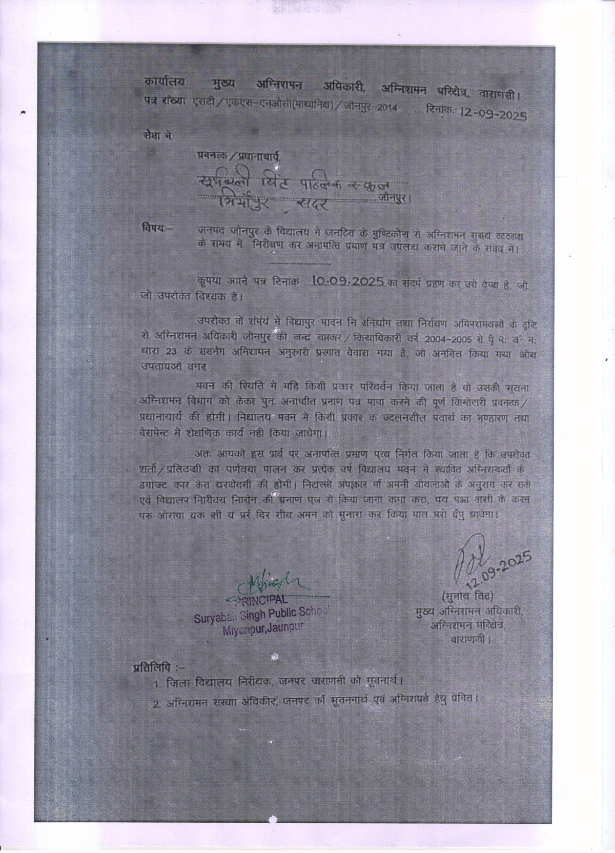 COPY OF VALID FIRE SAFETY CERTIFICATE ISSUED BY THE COMPETENT AUTHORITY